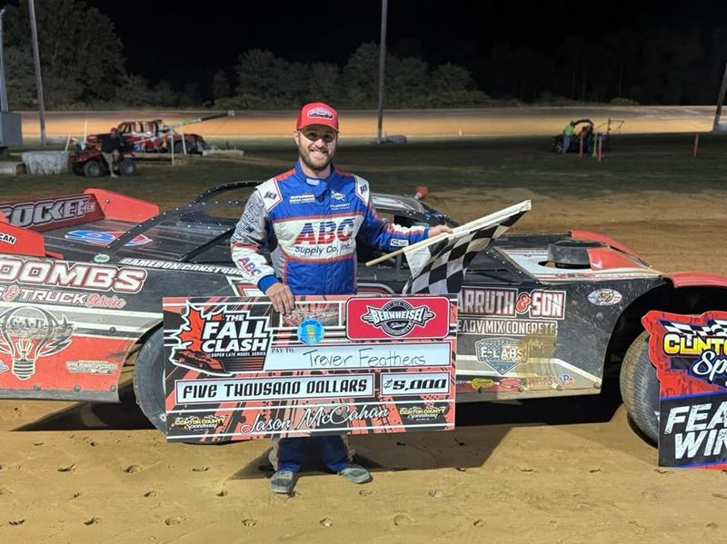 Mill Hall; PA – Trever Feathers of Winchester, VA earned the $5,000 paycheck during the Fall Clash for the Super Late Models on Saturday during the season finale at the Clinton County Speedway. Owen Dimm of Mifflintown won the River Valley Builders RaceSaver Sprint Cars. AJ Hoffner of East Berlin won the 4-Cylinder feature event.