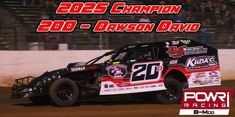 Belleville, IL. (9/29/25) Rising talent from Mexico, Missouri, Dawson David has etched his name into the POWRi record books, clinching the 2025 POWRi StockMod B-Mod National Championship after a breakout season filled with wins, consistency, and determination.