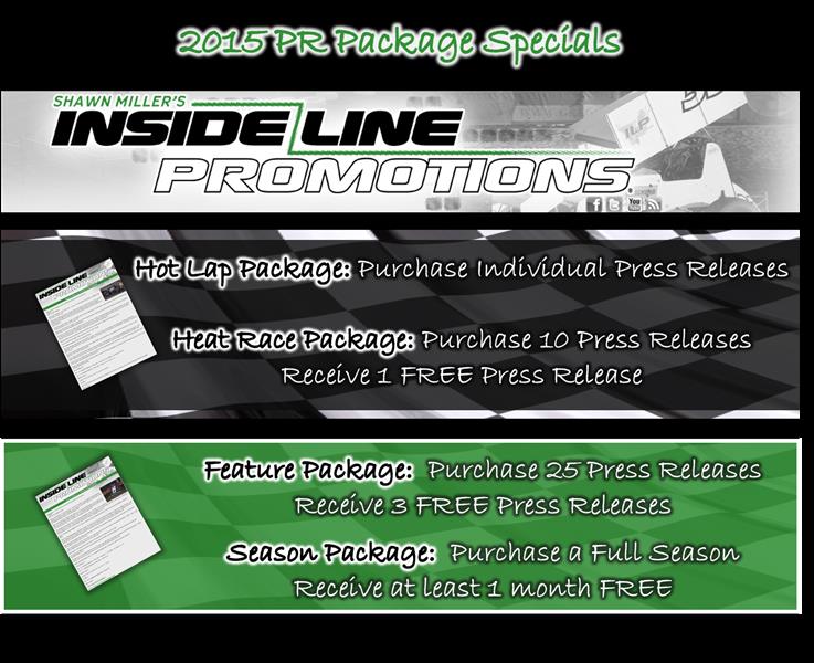 Inside Line Promotions has openings to provide professional PR for drivers, teams, sponsors, tracks, series, events, organizations and manufacturers. Here are the current PR specials: