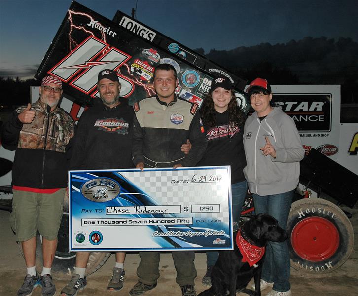 Muskegon, MI - Chase Ridenour took the checkered flags for his first feature win of the 2017 season at Thunderbird Raceway Saturday night! That gives Ridenour 2 A-Main wins in a row at Thunderbird, with his first coming last season on August, 13, 2016.