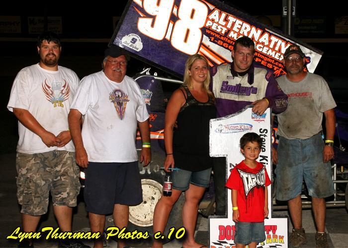 FOR IMMEDIATE RELEASE – Dodge City, Kansas – July 17, 2010 - J.D. Johnson of Goddard, Kansas took advantage of race long leader Garry Lee Maiers misfortune as he became the sixth different feature winner in as many races on the 2010 race season as he took home his fourth career O’Reilly/NCRA sprint car series feature Saturday night at Dodge City Raceway Park in Dodge City, Kansas during the tracks running of the third annual Steve King Memorial.