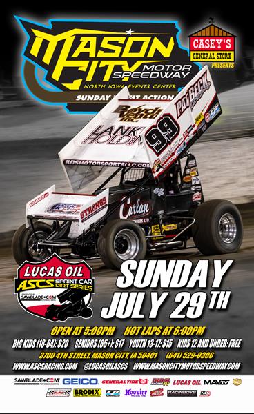 Bryan Hulbert – TULSA, Okla. (July 24, 2018) Giving teams a couple weekends to test and tune in preparation for the 28th annual ASCS 360 Knoxville Nationals presented by Great Southern Bank, another Iowa oval will set up the week of events as Mason City Motor Speedway prepares for action on Sunday, July 29.
