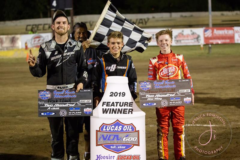 Inside Line Promotions – SAPULPA, Okla. (Aug. 1, 2019) – Chase Randall, Frank Flud and Mason Daugherty each scored a Lucas Oil National Open Wheel 600 Series presented by Tel-Star Technologies feature victory on Thursday at Creek County Speedway during the opening night of the Hi Plains Building Division Small-Town Showdown.