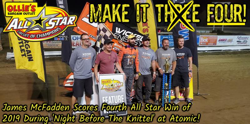 CHILLICOTHE, Ohio (September 13, 2019) - With plans to compete in Pennsylvania during the coming weekend, ‘Speedweek: Reloaded’ winner James McFadden was unsure of his team’s return to Atomic Speedway for Friday’s ‘Night Before The Knittel.’ Suffice it to say, the decision to stay in the Buckeye State proved exciting, as well as valuable.