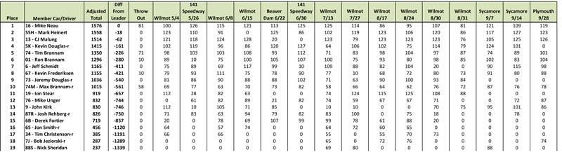 12 cars signed in for the season finale at Plymouth Dirt Track. The event, dubbed as the “Wisconsin State Sprint Car Championships”, saw the pits full with over 100 cars across 4 sprint car divisions. Coming into championship night, the 16 of Mike Neau held a 22 point lead over the 55H of Mark Heinert. Last week after taking his 3rd victory of the season, Heinert cut 18 points off of Neau’s previous lead so the 22 point deficit was definitely in striking distance for Heinert. The duo would qualify 1st and 2nd with Heinert grabbing his 4th quick time of the year. This would put each driver starting 4th in their heat races. Heinert was able to bring home a 2nd place finish in heat 1 and Neau would win his heat race, narrowly extending the lead to 23 points before the feature. The “3” pill was drawn and that would line up Neau 5th and Heinert 6th for the 20 lap A-Main with Neau needing a 5th or better finish to lock up the championship.. Mike Unger in the 76 would lead the field to green from his pole position starting spot but quickly yield the point to the 13 of CJ Malueg who started to his outside. Heinert was up to 3rd on lap 1 as Neau remained in 5th. Heinert was able to navigate past Unger and claim the 2nd spot on lap 2 as Neau advanced to 4th and started working on Unger for 3rd. Meanwhile, Malueg had open track and found a fast groove around the middle where rubber was deposited from the previous sprint A-mains. Once Neau passed Unger for 3rd, the top 3 broke away from the field but no one was gaining on anyone until they reached lapped traffic. Malueg was able to get through the traffic the best without altering his line too much and lapped up to 5th place, taking the white flag just as Unger spun in front of him in 1 and 2 bringing out a yellow and setting up a 2 lap green-white-checkered finish. Malueg would hold on and bring home his 6th feature win of the season, with Heinert and Neau rounding out the podium. The 01 of Ron Brannam stole the 4th spot on the final turn and claimed the hard charger by advancing 5 spots. Neau would hang on to his point lead and be crowned this season’s champion and the 5k of Kevin Douglas would earn Rookie of the Year honors in the most impressive showing by a rookie this series has seen in quite some time despite not being in attendance at the season finale.